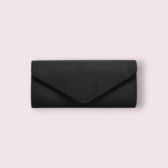 Pochette noir GB en tissu avec fermeture magnétique et bandoulière chaine amovible.